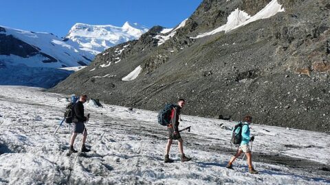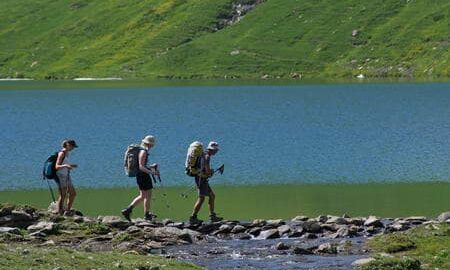 Fredag – Nedstigning langs søen til Place de moulin (1980 m) og derefter op igen til Plan sec (2069 m), Marmottin (2338 m), Crète Sèche hytten (2389 m) ankomst til Bionaz, hvor vi bliver samlet op for at vende tilbage til Argentière.
