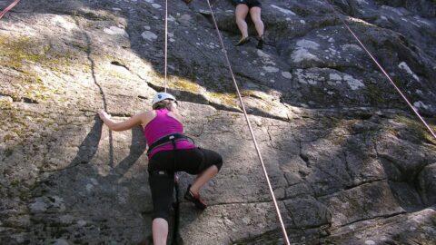 Til klatring: joggingbukser eller shorts og t-shirt