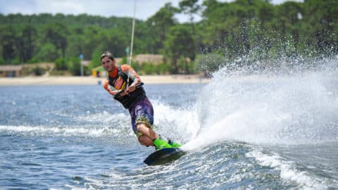 Windsurfing og wakeboarding, som er perfekte komplementære vandsportsaktiviteter, tilbydes i samme ophold. Du vil gøre brug af de tekniske overførsler mellem disse to sportsgrene, og du vil skiftevis trækkes ved båd og sejle ved windsurfing. Windsurfing-området tilbyder en lang sandbanke med et stort lavvandsområde, og wakeboard-området er beskyttet fra bølger.