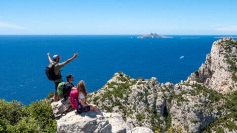 Efter at have afregnet dine eventuelle køb (bar, butik) og frigjort sovesalene for dine ting, vil du begive dig ud på denne sidste dag langs GR, for at opdage den vestlige del af Calanques: Marseilleveyre-massivet. Fra Madrague de Montredon, vil du passere gennem toppen af Béouveyre og derefter gennem Chèvres-kløften for at nå toppen af Marseilleveyre. En nedstigning gennem Selle-kløften vil bringe dig ud på det flade område af den døde mand. Denne rute langs toppene tilbyder udsigt til på den ene side havet og øerne, og på den anden side op til mont Ventoux.