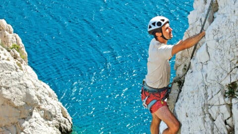 Til klatring og via corda sørger vi for en klatresele med karabinhager og lænker, klatresko, hjelm og en 40 liters rygsæk.
