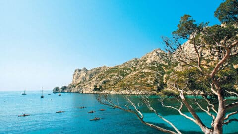 Tirsdag – Efter at have brugt lidt tid på at gøre dig fortrolig med din båd, navigationsinstruktionerne og de første sikkerhedsregler, mens du opdager Sormiou-kløften og dens Capelan-grotte, vil du tage af sted i havkajak for at opdage Morgiou, dens blå grotte og dens lille fiskerihavn.