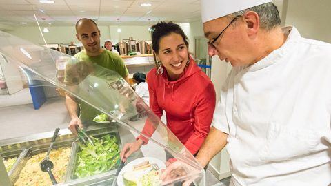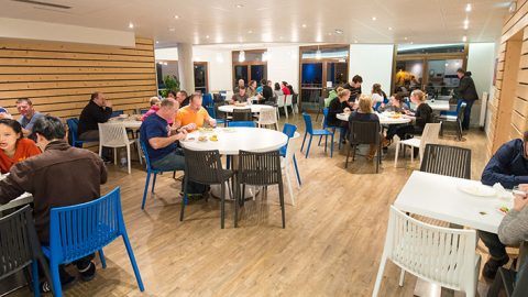 Middagen er en 4-retters buffet – typisk en salatbar som forret, valg af 3 eller 4 hovedretter (oftest fisk), flere forskellige oste, frugt, dessert og is.