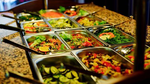 Middagen er en 4-retters buffet – typisk en salatbar som forret, valg af 3 eller 4 hovedretter (oftest fisk), flere forskellige oste, frugt, dessert og is.