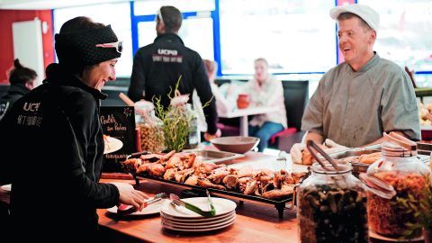 Den typiske frokost er picnic-agtig med stort udvalg af brød, kød, ost, pasta, salat, frugt, slik m.m. Picnic-frokost giver dig maksimal tid i bakkerne uden at skulle bruge en formue på dyre bjergrestauranter.